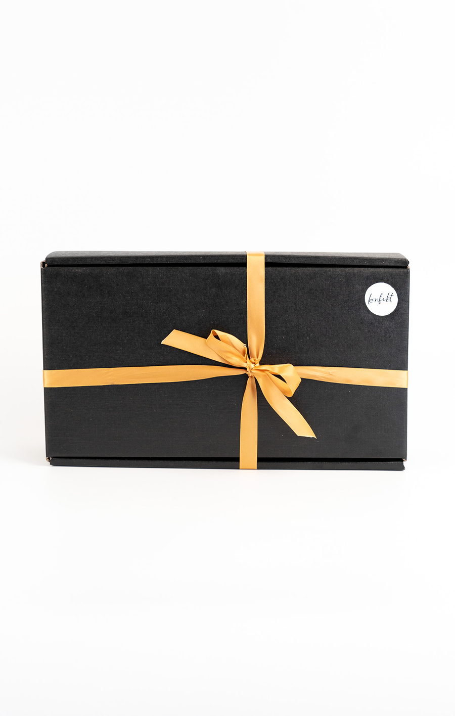 En elegant svart box med en sofistikerad design som förmedlar en känsla av ren lyx. Trots sitt stilrena yttre i papp rymmer den något betydligt mer exklusivt – hela 2,5 kg noggrant handplockat godis av högsta kvalitet. Varje bit är utvald för sin utsökta smak och perfekta balans, vilket skapar en njutningsfull upplevelse utöver det vanliga. En självklar gåva när du vill imponera – eller en välförtjänt indulgence för skrivbordet, kontoret eller hemmets finare stunder.