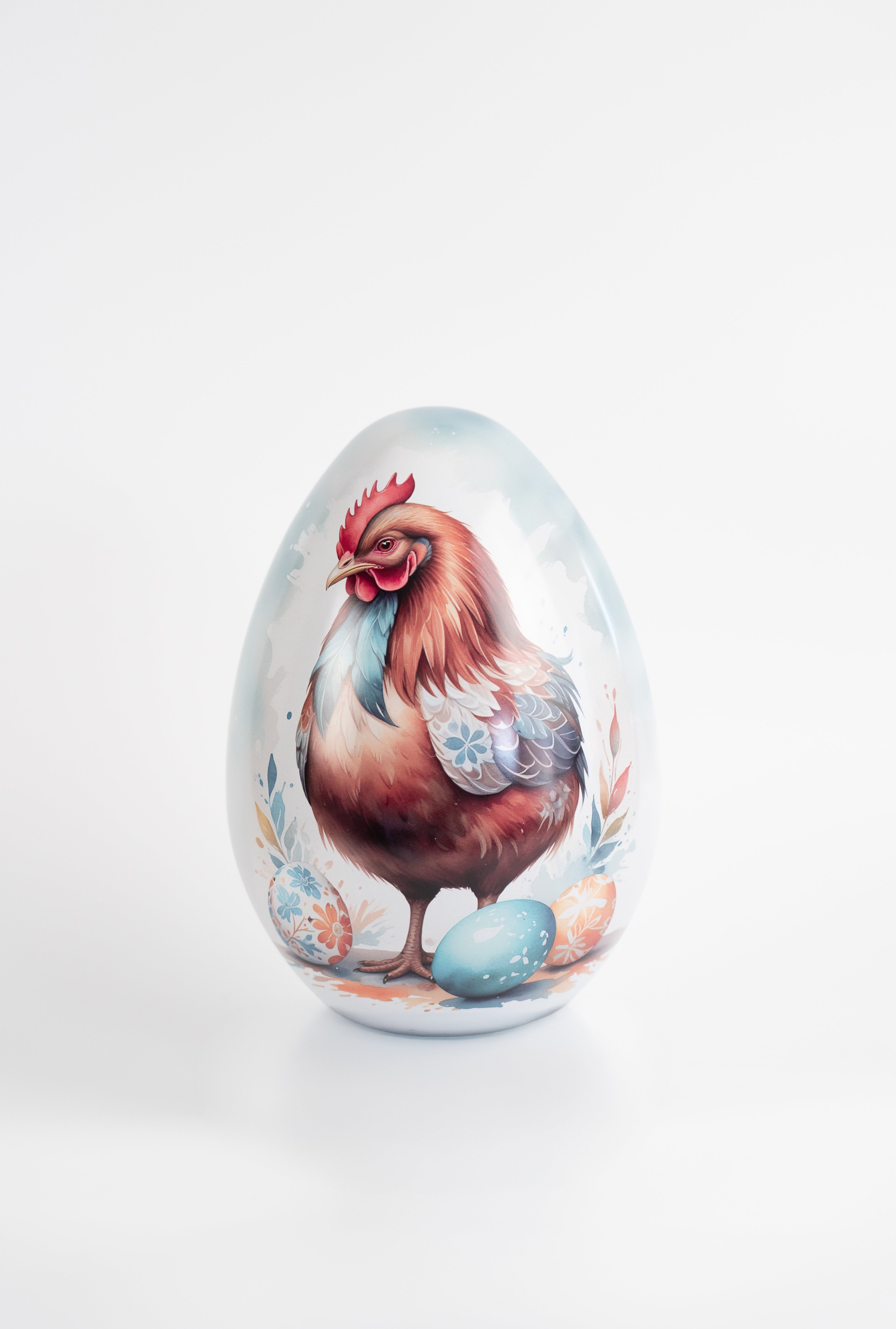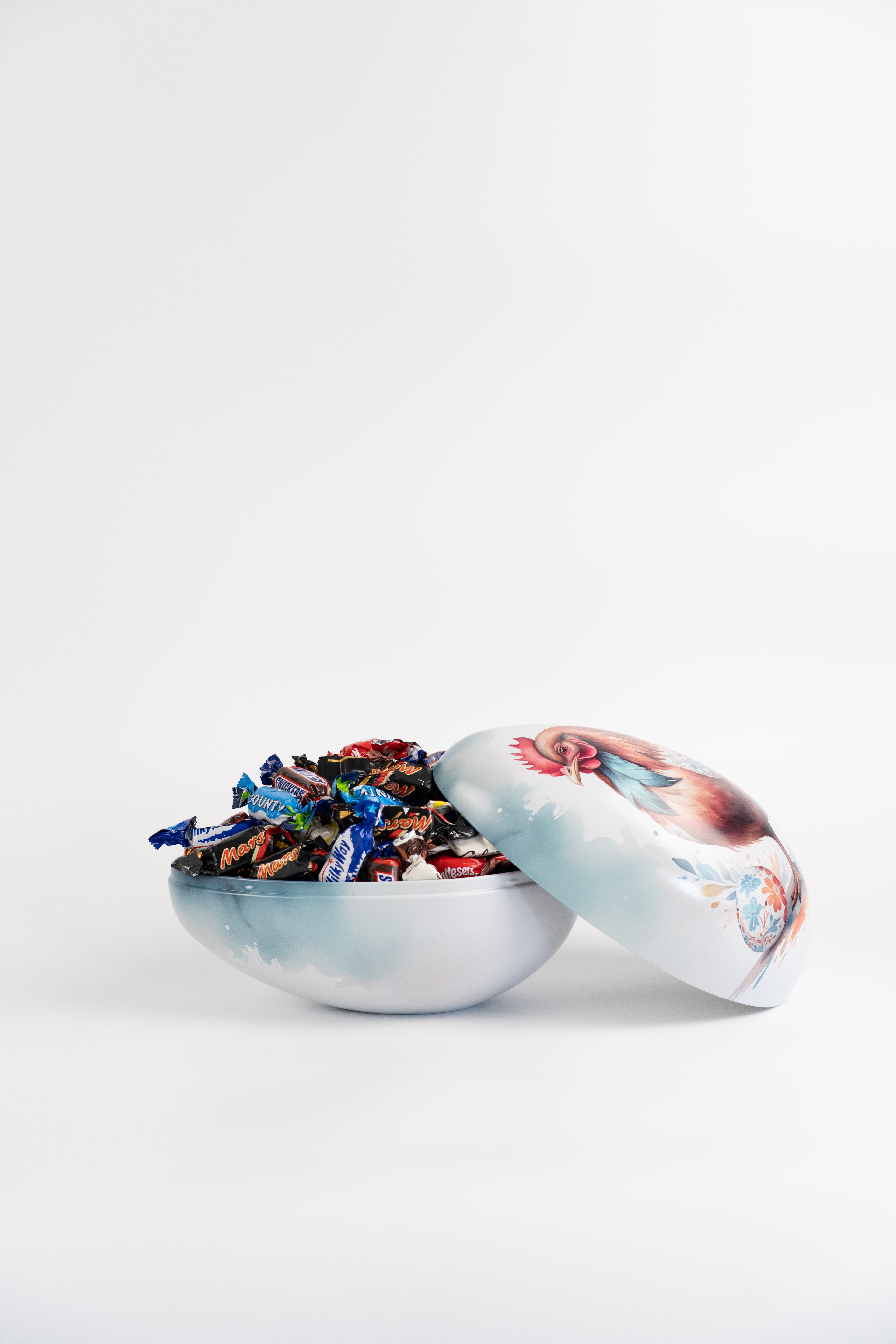 Upptäck påskens mest sofistikerade nyhet – Akvarell Blå Tupp. Ett exklusivt påskägg i plåt med konstnärligt akvarellmotiv och elegant design från MolliToys. Den djupblå tuppen, målad i mjuka penseldrag och harmoniska toner, ger ett stilrent och modernt uttryck som lyfter både hem och kontor. Detta är mer än ett påskägg – det är en smakfull inredningsdetalj. Den gedigna plåtburken andas kvalitet och exklusivitet, perfekt att placera på skrivbordet, i bokhyllan eller på sideboardet som en dekorativ statement-piece även långt efter att påsken är över. Inuti väntar hela 1,6 kg noggrant utvalt godis av bästa kvalitet – en generös och lyxig fyllning som matchar äggets eleganta yttre. Varje detalj är genomtänkt för att skapa en premiumupplevelse, från design till innehåll.