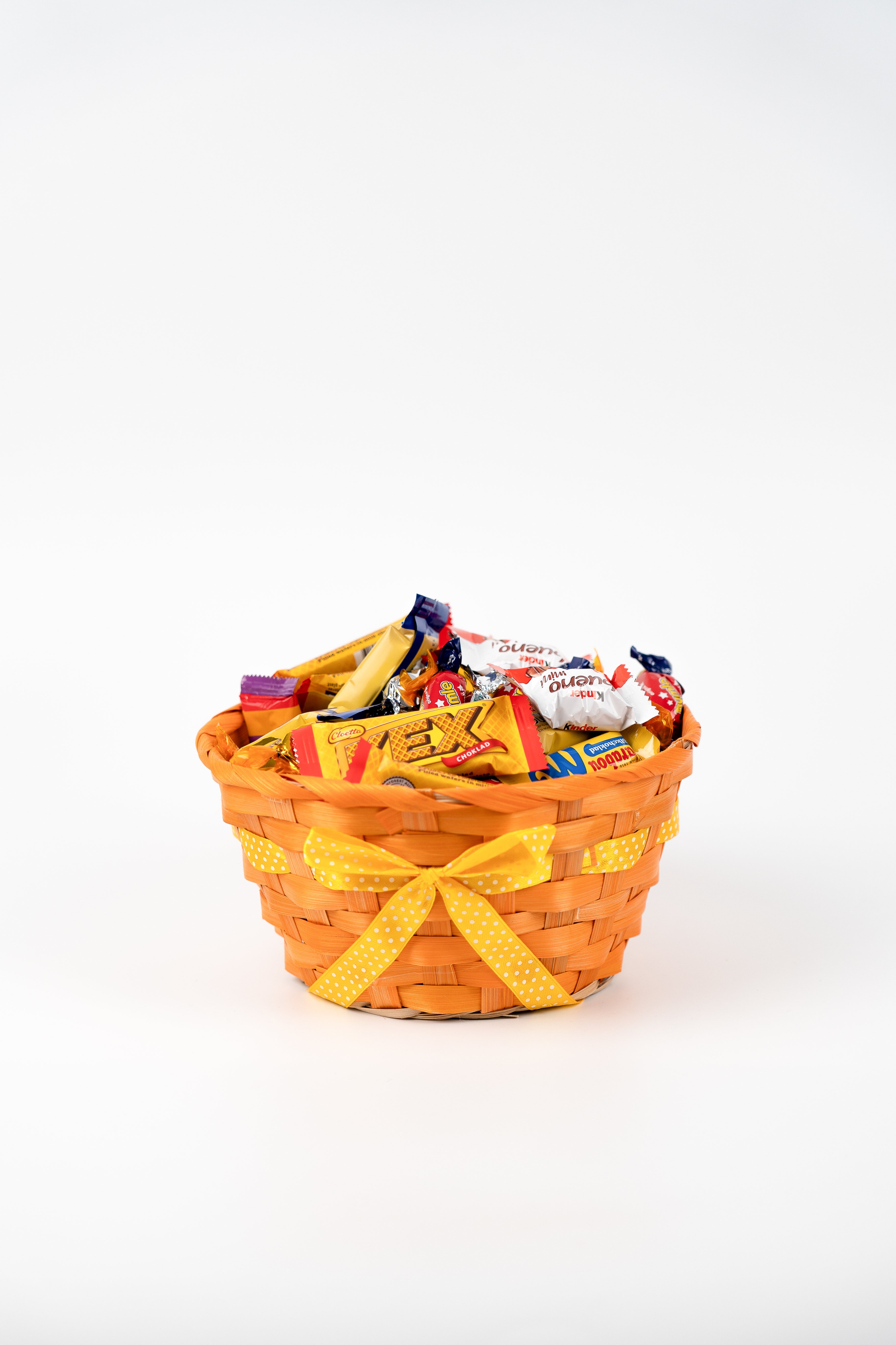 Färg kan önskas men inte väljas. Påskkorgen innehåller 1,2 kilo godis.