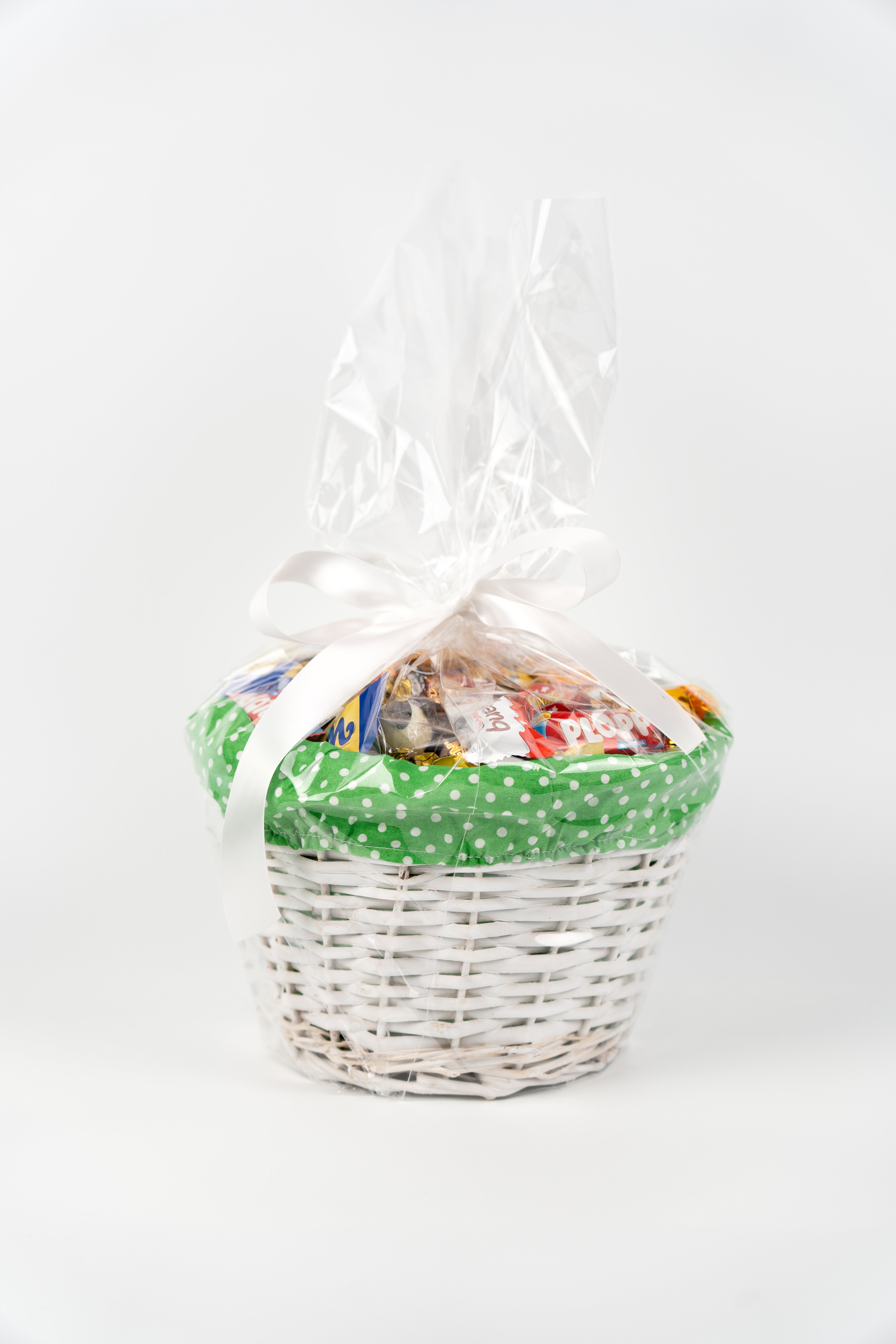 Färg kan önskas men inte väljas. Påskkorgen innehåller 2 kilo godis.